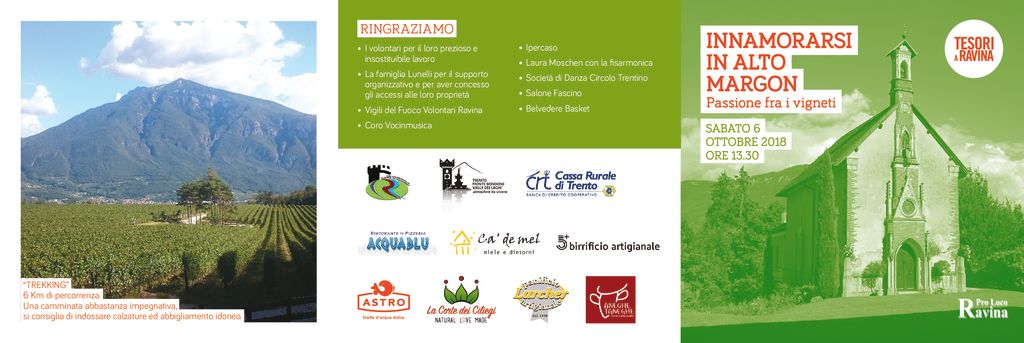 "Innamorarsi in Alto Margon": Passione fra i vigneti. Una bella passeggiata in compagnia, in un luogo storico ricco di natura. Sabato 06 ottobre a Ravina [...]