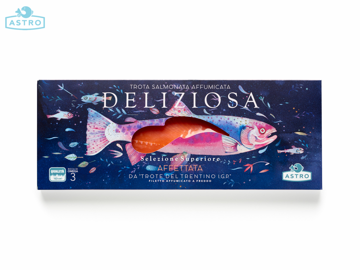 Gli affumicati Astro sono perfetti per aperitivi, antipasti, contorni e altro ancora sono preparati senza conservanti aggiunti e solo aromi naturali. Sono disponibili in 5 ricette squisite: il Delizia, il Classico, l’Affettato, il Rustico e il Filetto Salmerino alpino affumicato.
