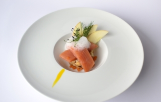Primizie di trota fario marinati con rucoletta e pomodorini