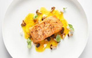 Filetto di trota salmonata in bellavista su lettino di carotine e verze brasate